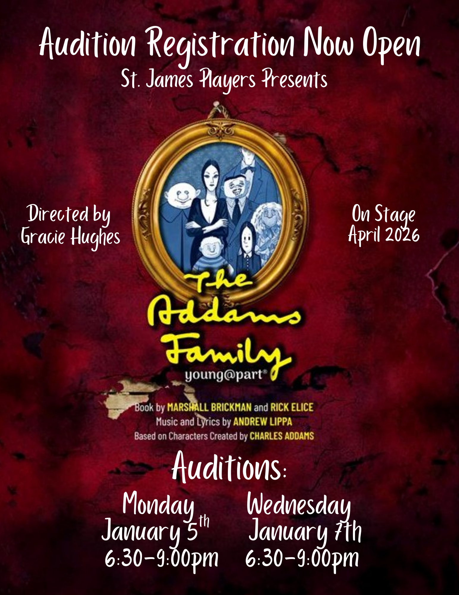 Directed by Gracie Hughes. Auditions January 5th & 7th, 6:30-9:00pm